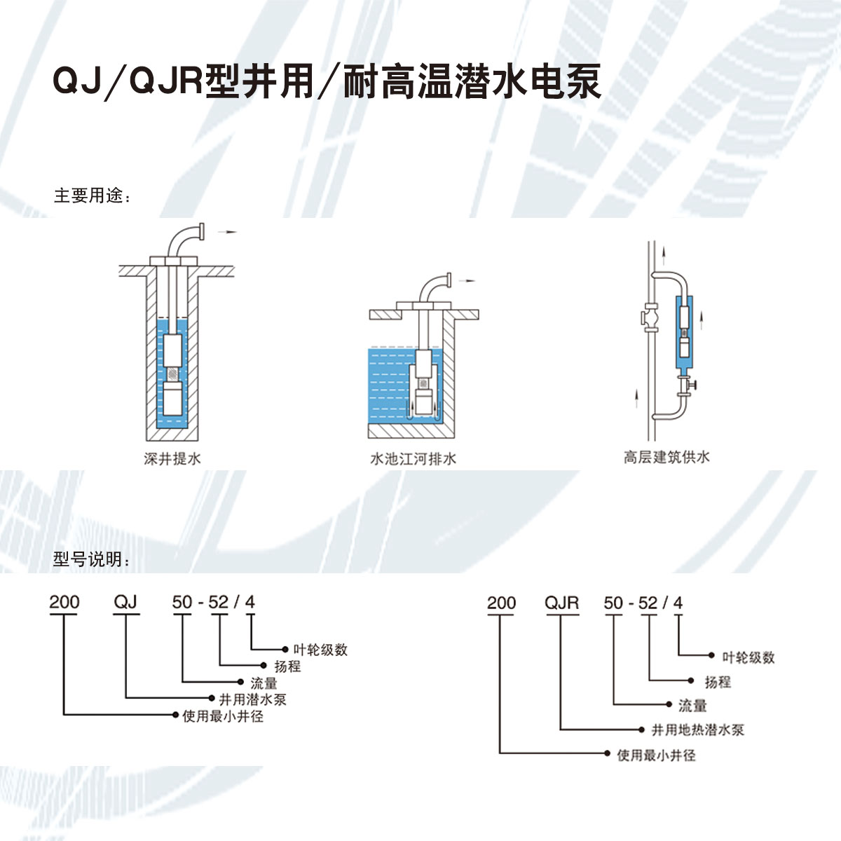 QJ/QJR型井用/耐高温潜水电泵
